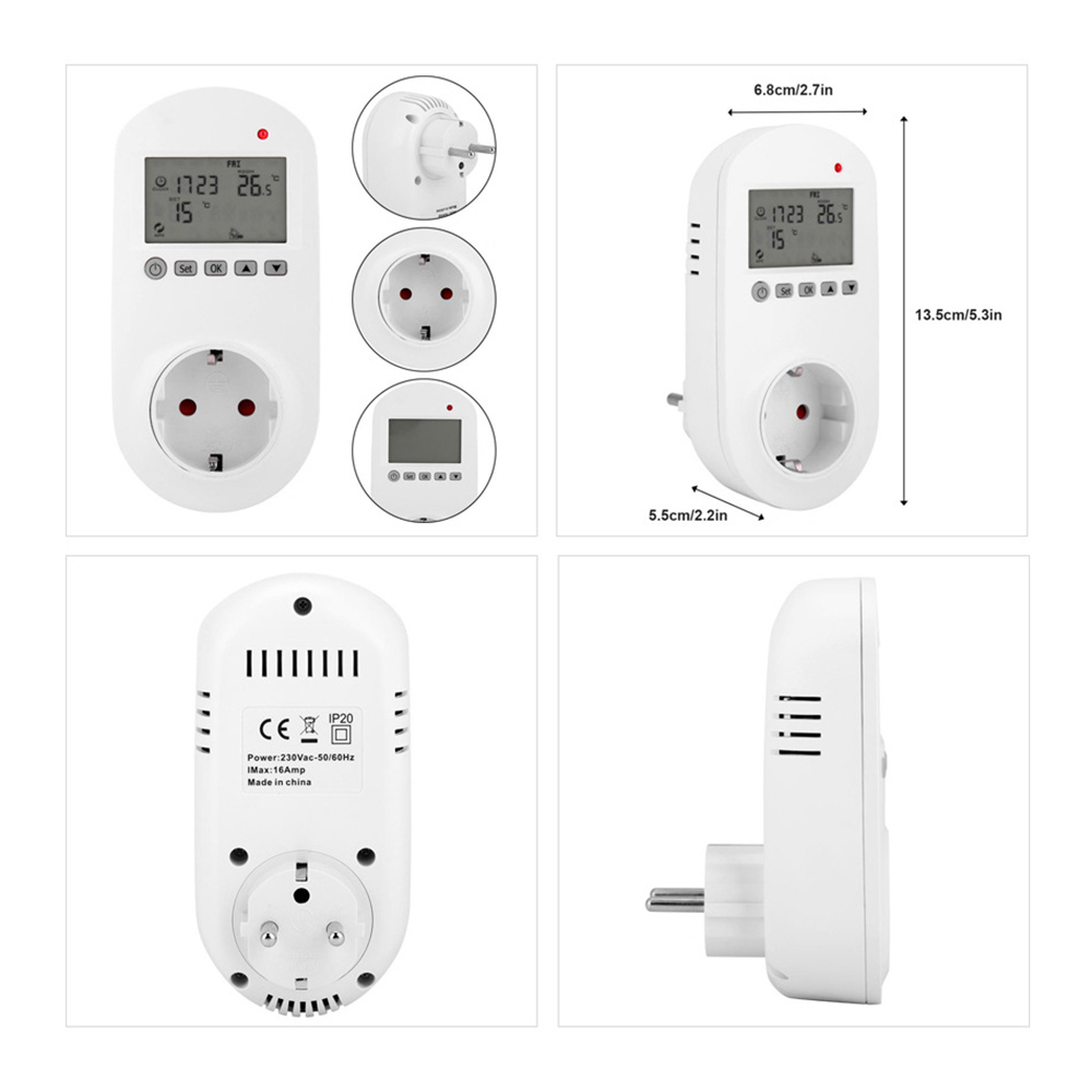 Weekly programming modes include: 5+2, 6+1 and 7 days, and DIY programming can be performed. Voltage and maxI:230Vac 50/60Hz 16A