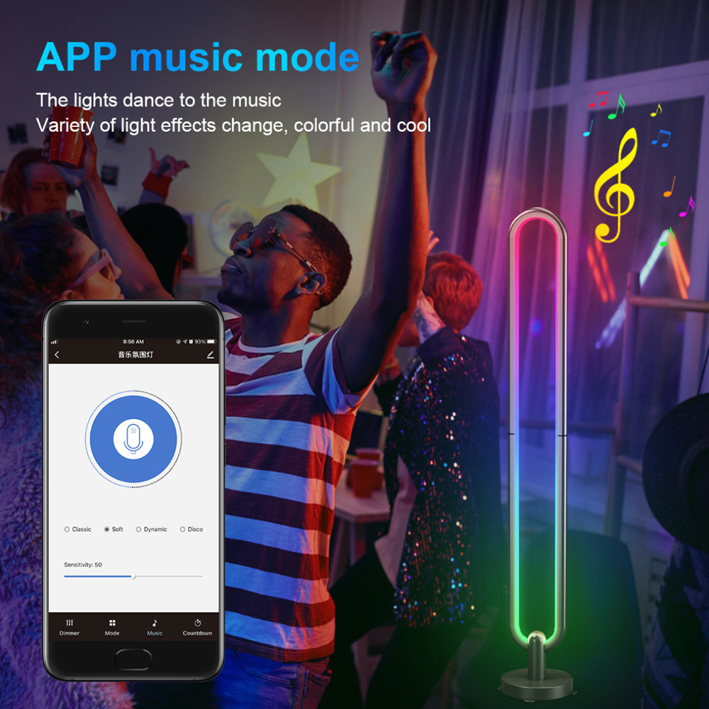 Intelligenter Musikmodus und Mikrofonmodus: Eingebautes hochempfindliches Mikrofon, LED-Stehlampe blinkt und ändert die Farbe synchron mit Musikrhythmus oder Umgebungsgeräuschen. Eine Vielzahl von Rhythmus-Modi stehen zur Verfügung, egal ob es sich um ein leidenschaftliches Spiel oder eine Party-Disco handelt, der Musik-Rhythmus-Modus wird Ihnen mehr Freude bereiten.
