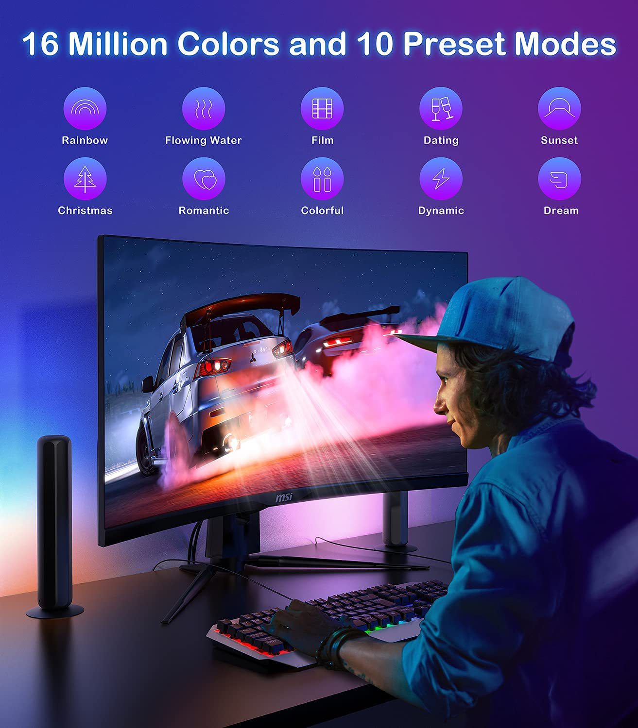 Mehrere Lichtmodi: Unser LED-Umgebungslicht kann in der App auf 16 Millionen Farben eingestellt werden, Sie können auch die Blinkfarbe und das Lichtblinkmuster anpassen. Eine Vielzahl von personalisierten Optionen, um Ihrer Kreativität freien Lauf zu lassen.
