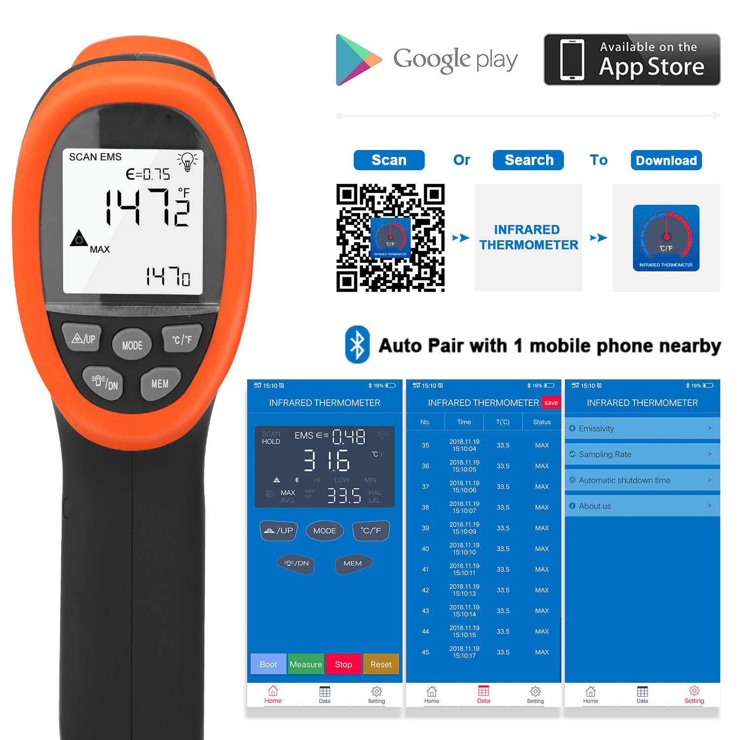 Bluetooth infrared thermodetector