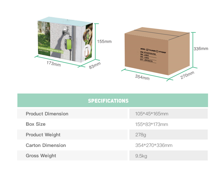 Manuelle Bewässerung: Sie können den automatischen Bewässerungstimer für 1-59 Minuten über die Taste oder den Timer auf Ihrem Telefon einschalten, ohne Ihre Bewässerungszeit zu beeinträchtigen. Wenn Sie Wasser benötigen, um Ihr Auto zu waschen oder Ihren Hund im Hof zu baden, werden Sie es sehr nützlich finden.