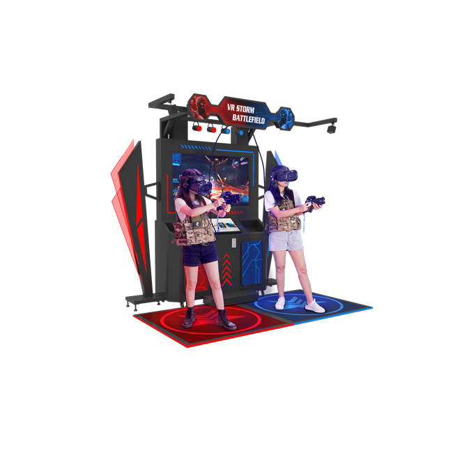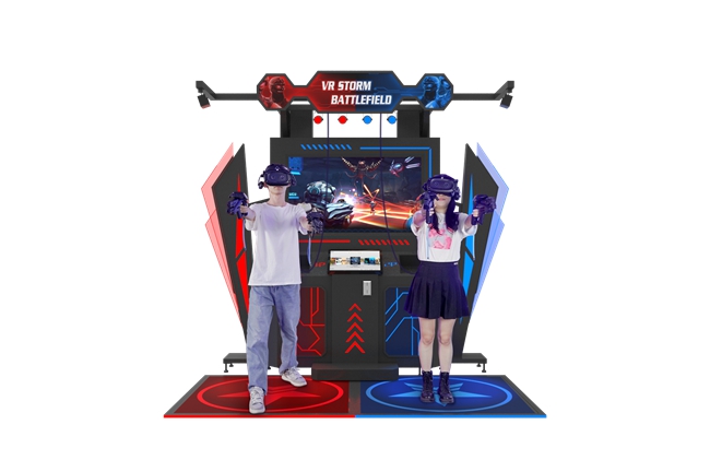暴风战场是一款可双人联机互动射击游戏,支持同台竞技与协同作战;主打拳击、射击对战、恐怖等主题游戏内容,选择多,回头率高;配备地板式震动和手柄体感,利用震动传递,带给玩家紧张氛围和真实感;玩家体验的每一次尖叫和挥动,必是最佳引流!